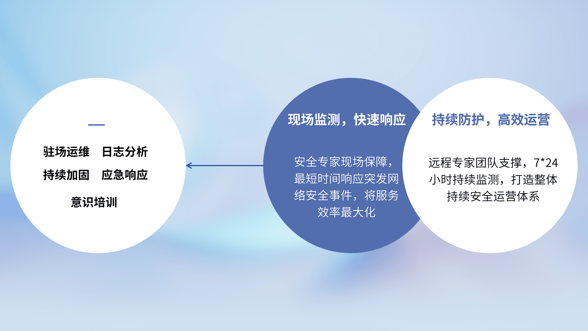 7X24小时持续监测安全事件,保持安全策略有效性,降低资产脆弱性风险,,,精准拦截黑客攻击,,,减少被黑客利用的机会,,,,第一时间遏制,,降低损失。。。